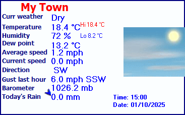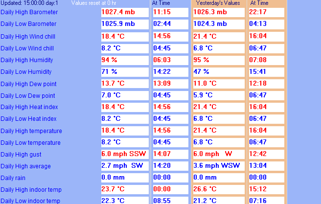Yesterdays rainfall | 0.0 mm | DewPoint | 13.4°C (Wet Bulb :15.2°C ) |