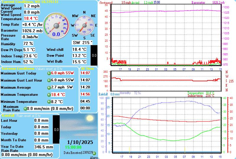 Windchill Temperature | 17.5°C | Maximum Gust (last hour) | 4.0 mph at: 13:11 |