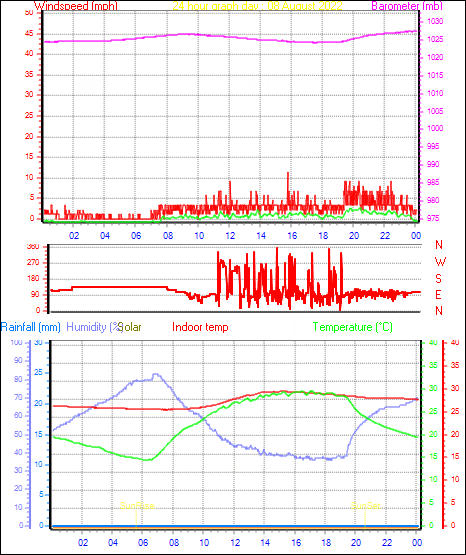 Maximum Gust (since midnight) | 4.0 mph at: 12:21 | Maximum 1 minute average (since midnight) | 2.5 mph at: 13:29 |